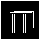 BCS のニューラルネットワークによって,まず局所的な明るさの差の方位に分解し,ネットワーク内のユニットどうしの競合・協調プロセスを経て物理的な輪郭と同時に主観的輪郭の候補となるエッジ方位成分も生成する.実行例として,図9から検出したエッジを図11に示す.背景と等輝度の領域内でエッジや頂点が検出されていない.図12は図10から検出したエッジを示す.(a) では BCS アルゴリズムによって各線分の端点で線分に直交するような線分が発生し,主観的輪郭に相当する線分が現われている.これに対して(b) は BCS を適用しなかった場合(コントラストと方位の検出のみ行なった)には,物理的輪郭に相当するエッジだけが検出されて,主観的輪郭に相当する線分は現われない.