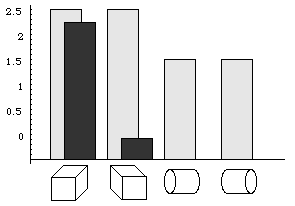 図13の各頂点テンプレートの出力値をこのネットワークに入力した結果得られたジオン・ノード群の出力値の一部分を図17に示す(黒いバー).白いバーは完全な線画が入力された場合のジオン・ノードの出力値である。正しいジオン・ノードが大きい値を出力している.
